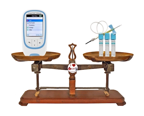 Au fait, saviez-vous que votre INR serait potentiellement différent si vous faisiez analyser votre sang prélevé au même moment par deux laboratoires différents ? Il peut y avoir entre des INR faits dans deux laboratoires distincts des différences aussi importantes qu’entre un INR au laboratoire et un INR au CoaguChek !